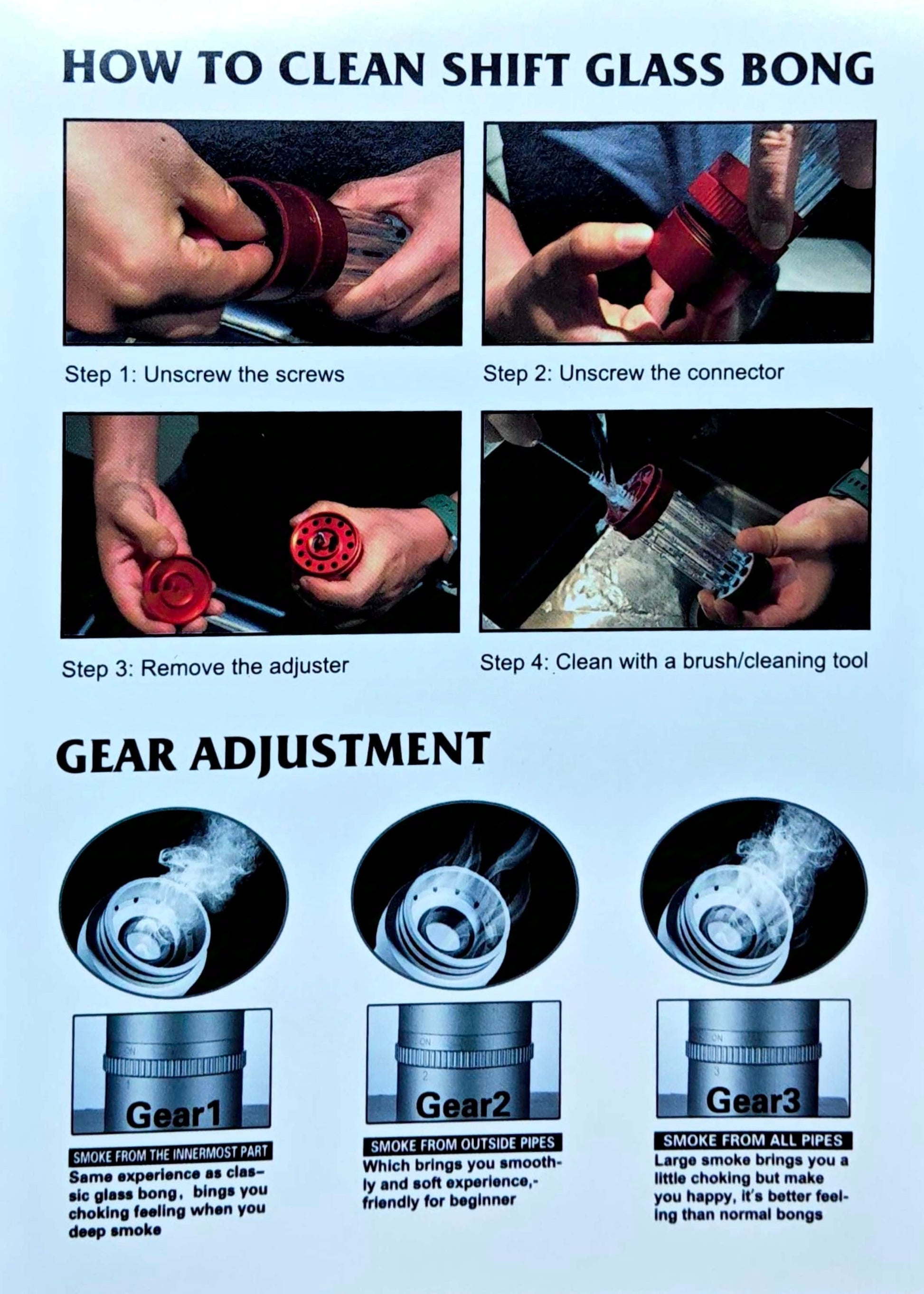- Including: Metal chamber, 4.5" downstem, glass bowl, glass mouth piece, glass base, two extra rubber bands and three brushes